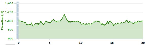 Yesterday’s run also included a road to one of the highest points in Bedford, as you can see below in the spike around mile 7. The hill didn’t seem all that big at the time, but thinking back is was definitely pretty big. Comparing this 20-miler to two weeks ago, yesterday’s had 100 more feet of elevation gain.