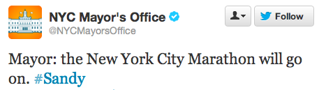 You also have Mayor Bloomberg stating that it’s his “understanding” that the marathon will go on. That is not a definitive answer.