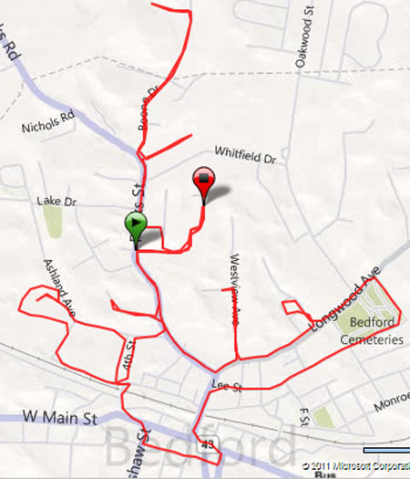Here’s a look at today’s very up and down run around Bedford:
