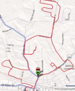 I headed to Lynchburg for my 18 miler for a change of scenery — the plan was to run about 6 miles by myself, meet my friend Scott I met via Daily Mile a few months ago for about 7 miles, then finish the run off by myself.